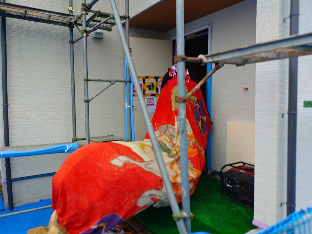 先日、工事中の現場にお施主様とともに獅子舞が来てくださいました。