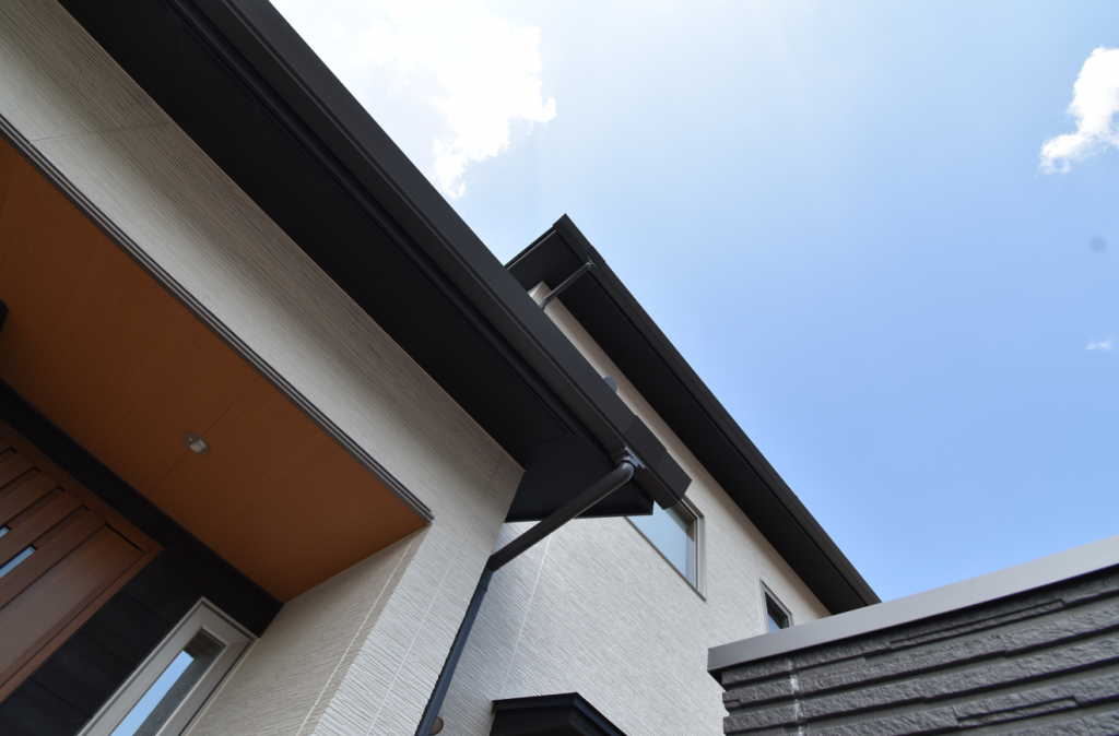 外観は落ち着いた品のある佇まい。白と濃色のコントラストが美しい和モダンテイストです。