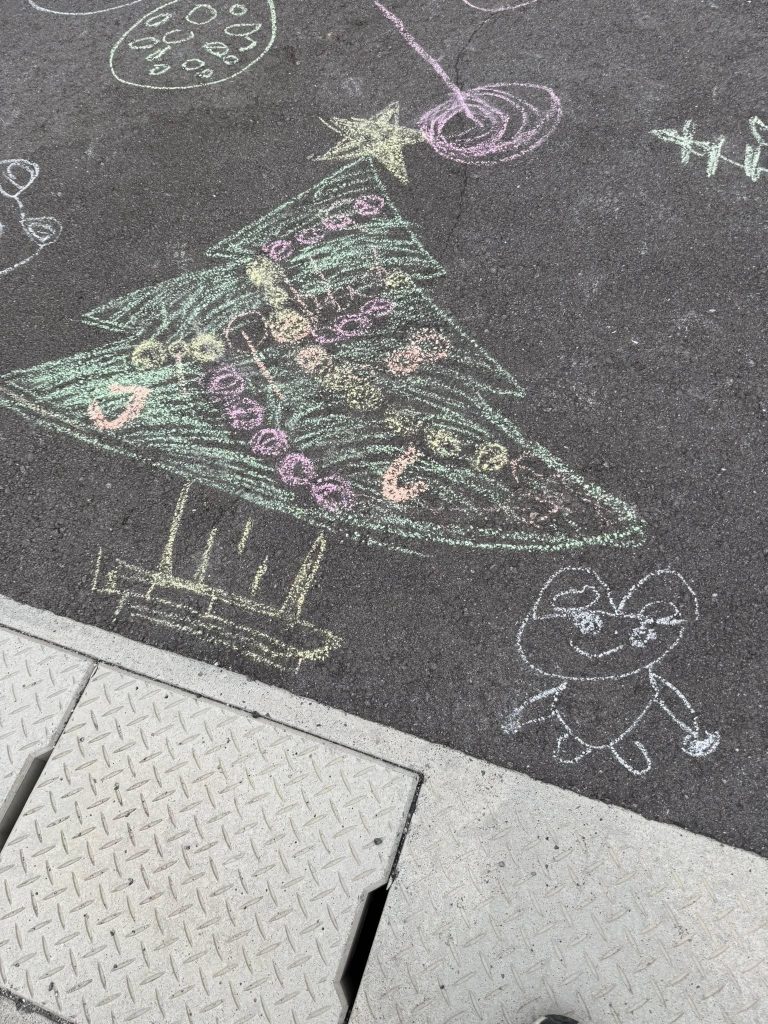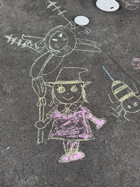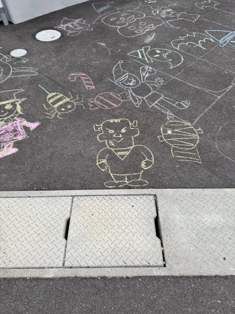 朝を散歩しているとアスファルトに落書きがいっぱい