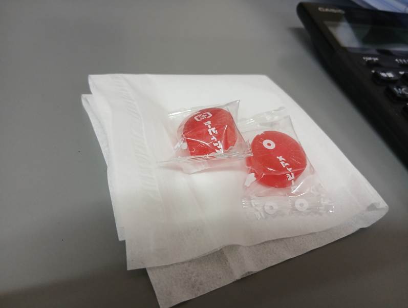 現場から戻ってくると、私の机の上にそっとおやつが置いてあることがあります。