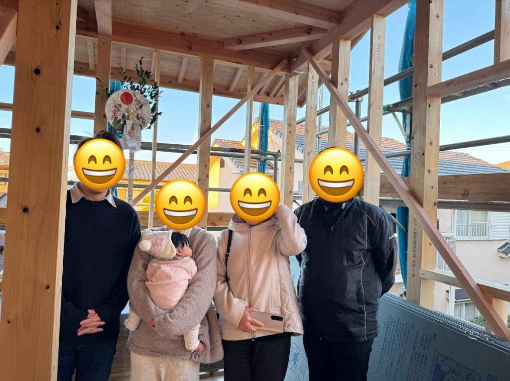 まず初めに上棟式。お天気にも恵まれ、大工さんも頑張って屋根仕舞いまで完了してくれました。これで急な雨も心配なし!