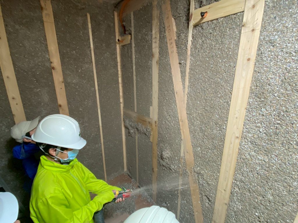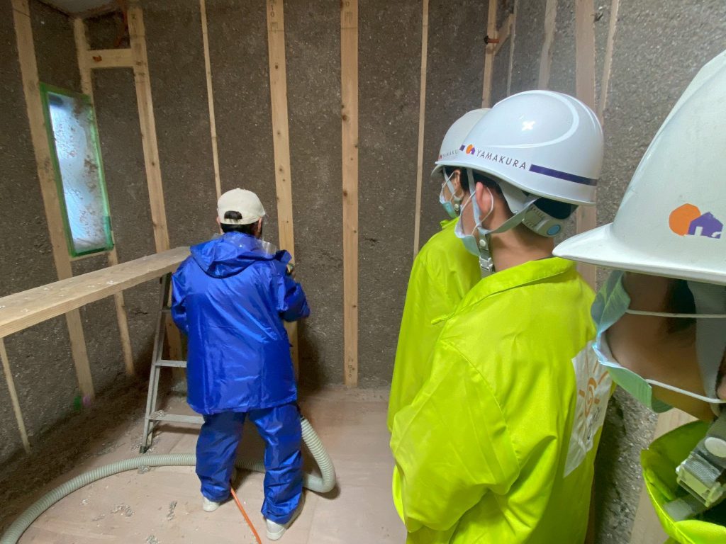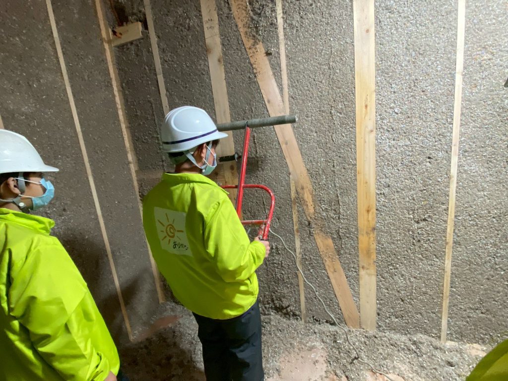 実際に断熱材を吹き付ける体験などをしてもらいました。