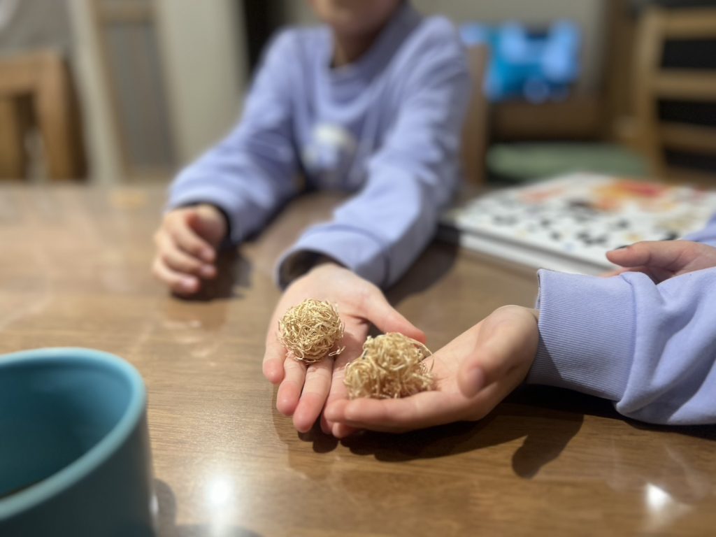 そっと手を開くと、中には大工さんが工事中に渡したという“桧の木くず”。