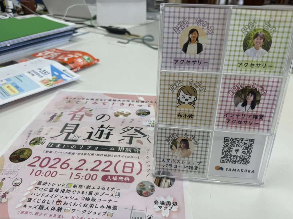 今日知ったのですが弊社女性スタッフ手づくりハンドメイド作品を持ち寄った、山倉建設スタッフコーナーもあるようです(@_@)