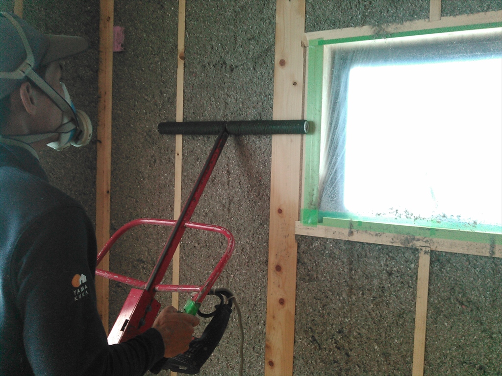 湿気の流動を抑え、結露を防止するため、セルロースを隙間なく高密度になるよう施工します。